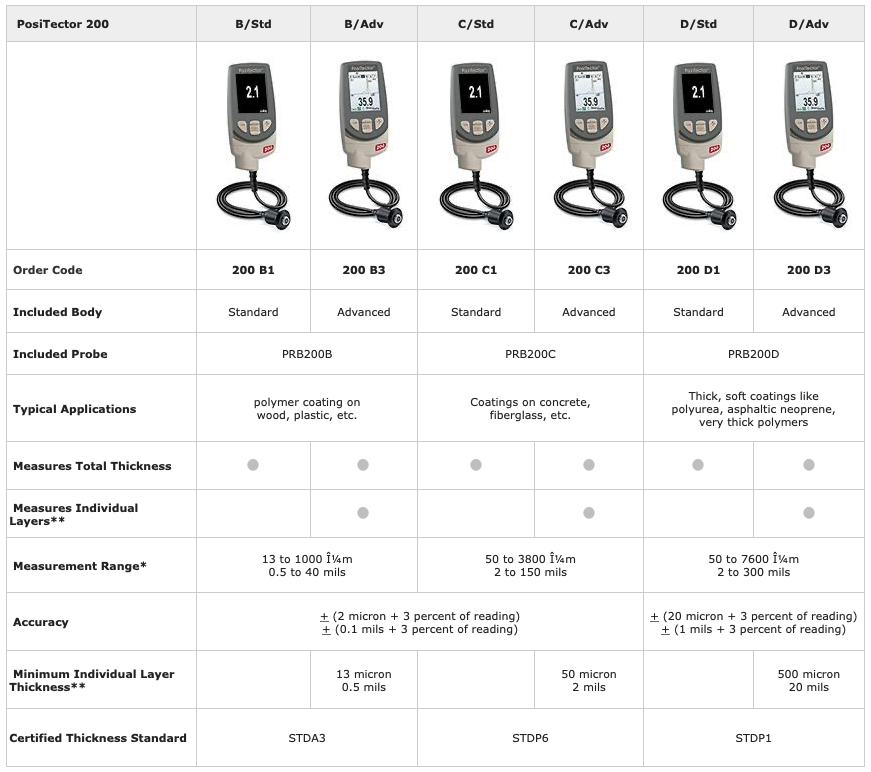 PosiTector 200 đo lường không phá hủy một loạt các ứng dụng bằng cách sử dụng công nghệ siêu âm đã được chứng minh. Đo độ dày lớp phủ trên gỗ, bê tông, nhựa, vật liệu tổng hợp, kim loại và hơn thế nữa. Các mô hình tiên tiến đo độ dày lên đến 3 lớp riêng lẻ trong một hệ thống nhiều lớp và có tính năng đọc đồ họa để phân tích chi tiết hệ thống phủ.
