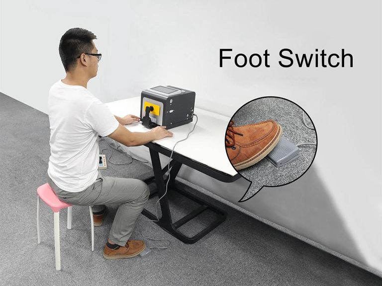 Máy in siêu nhỏ, công tắc chân, giá đỡ xoay có thể tùy ý lựa chọn theo nhu cầu.