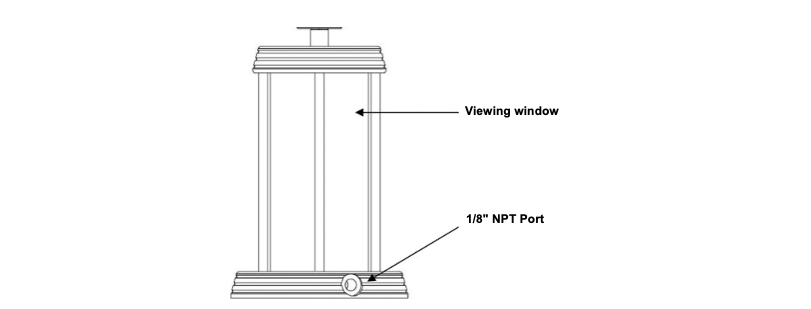 Two 1/8" NPT female ports (gauge & Process) Materials: Delrin® plastic handle, nitrile o-rings, brass, aluminum, polycarbonate. |